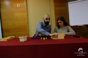 Tudo isto enriquecido por experiências pessoais e esclarecimento de dúvidas que nos permitiram aprofundar a prática deste sistema educativo. Ainda, aprendemos como se realizam as apresentações de alguns dos materiais desenvolvidos pela Dra. Montessori, assim como algumas atividades para as etapas de Infantil e de Primária.